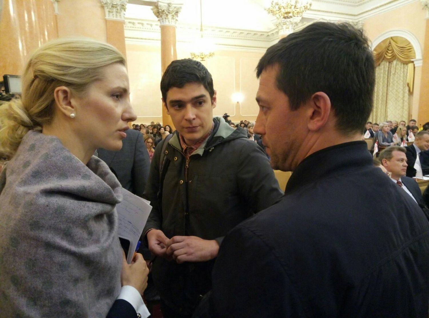12:34 Пока депутаты решают вопросы по земле, вице-мэр Андрей Котляр сказал журналистам, что сейчас решают по поводу сотрудника муниципальной охраны, который выдворил Устименко из зала. Говорит, что полиция будет решать, превысил ли он полномочия, если да - будут предприняты меры. Тем временем охрана говорит, что полиция должна эвакуировать здание