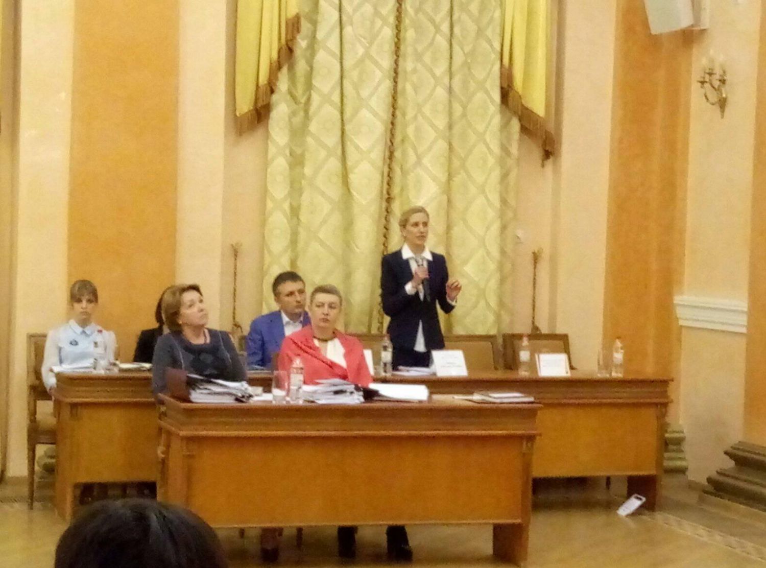 11:17 Вопрос о внесении изменений в Городскую целевую программу «Номинирование исторического достояния Одессы в Список всемирного наследия ЮНЕСКО» на 2016-2018 годы, утвержденную решением Одесского городского совета от 30 июня 2016 года № 776-VII. Депутат Позднякова говорит, что пора создать отдельную программу, котораяа не будет связана с ЮНЕСКО, так как из-за застройки города ни в какую программу ЮНЕСКО мы уже не попадаем. "Вызывает недоумение вопрос о рекоснтрукции здания на Дерибасовской, 4. От сессии до сессии мы ппроявляем такую щедрость к прокуратуре. Неясно, что именно мы ремонтируем. В этом здании находятся 4 организации. Прокуратура занимает большую часть здания, в собственности громады есть также нежилое помещение площадью 500 кв. м. Что же мы ремонтируем? И собирается ли переезжать управление прокуратуры с Приморского бульвара в это здание? И если переедет, то что мы будем делать с тем зданием? Если будем продавать, то сопоставима ли эта сумма с суммой ремонта за 46 миллионов?". Раздаются аплодисмент, Труханов гворит: "Мда..."