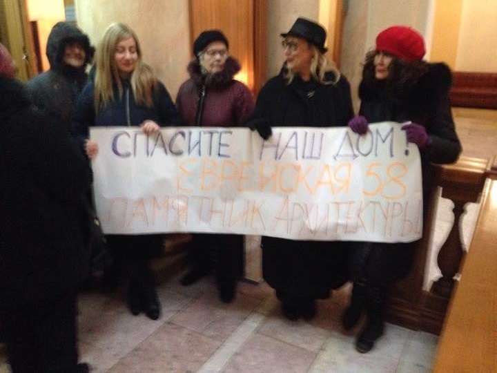 10:40 В холле горсовета проходит небольшой пикет жителей дома по улице Еврейской. Они утверждают, что в их доме незаконно строится мансарда, чтобы обустроить в ней хостел, и опасаются за сохранность дома. Также сообщают, что в доме появились трещины. Требуют прекратить строительство мансарды
