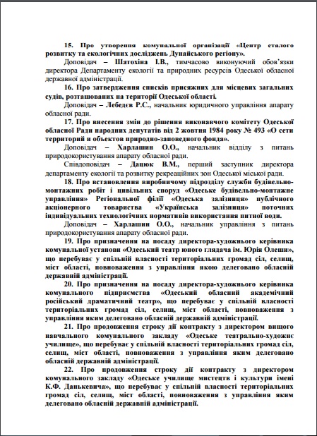 работников аппарата областного совета". За голосовали только 19 депутатов решение не принято. Депутат Кащи отказался выступать