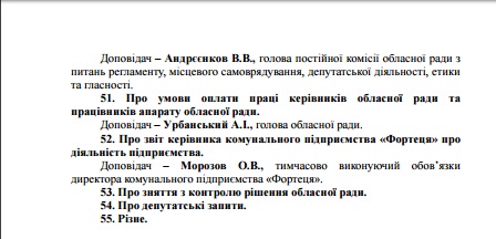09:30 Вчера, 7 июня, на сайте облсовета опубликовали ориентировочную повестку дня. В ней 55 вопросов, включая пункт "разное":