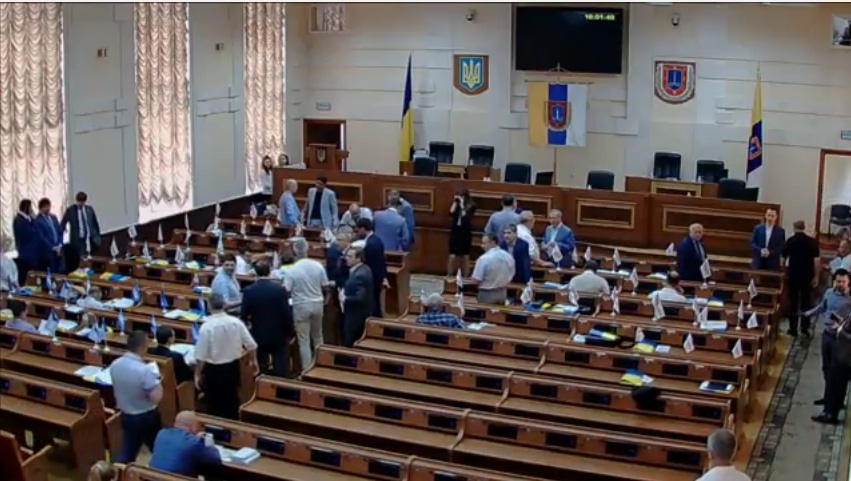 11:03 Глава Одесской областной администрации проводит перерыв с депутатами в зале. Председатель областного совета и главы фракций все еще совещаются