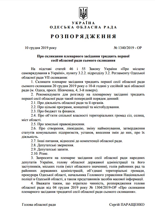 В целом в предварительно повестке дня всего 10 вопросов. Однако накануне на сайте облсовета опубликовали порядка 48 проектов решений. Напомним, что положение части 3 статьи 15 Закона Украины «О доступе к публичной информации» гласит: «Проекты нормативно-правовых актов, решений органов местного самоуправления, разработанные соответствующими распорядителями, обнародуются ими не позднее чем за 20 рабочих дней до даты их рассмотрения с целью принятия».