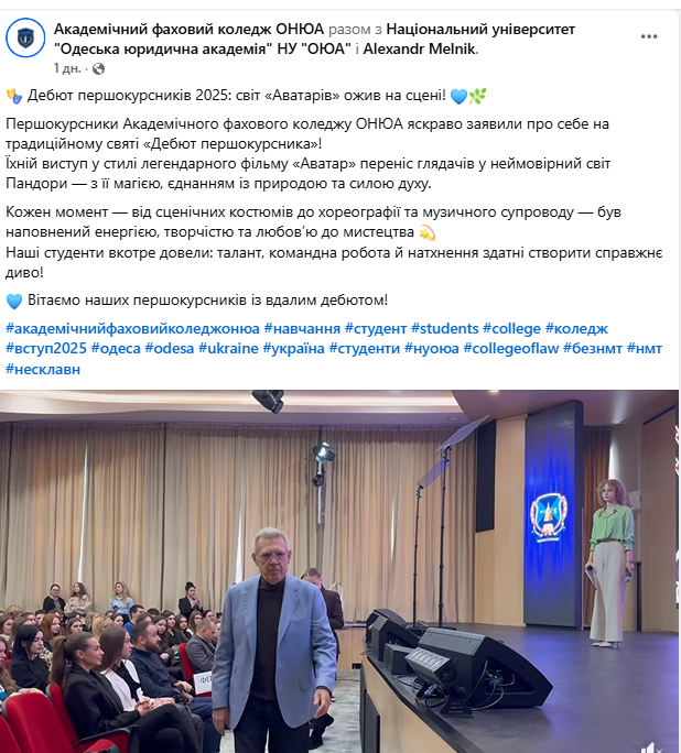 Как подразделение Академии выглядят и страницы Колледжа в соцсетях. Например, на странице заведения в Фейсбук через один публикуют списопосты Колледжа и Академии. В объявлениях о дне открытых дверей указывают адрес главного корпуса Академии, на мероприятиях часто присутствуют экс-глава и президент Академии Сергей Кивалов и действующий ректор ее Олег Тодощак.