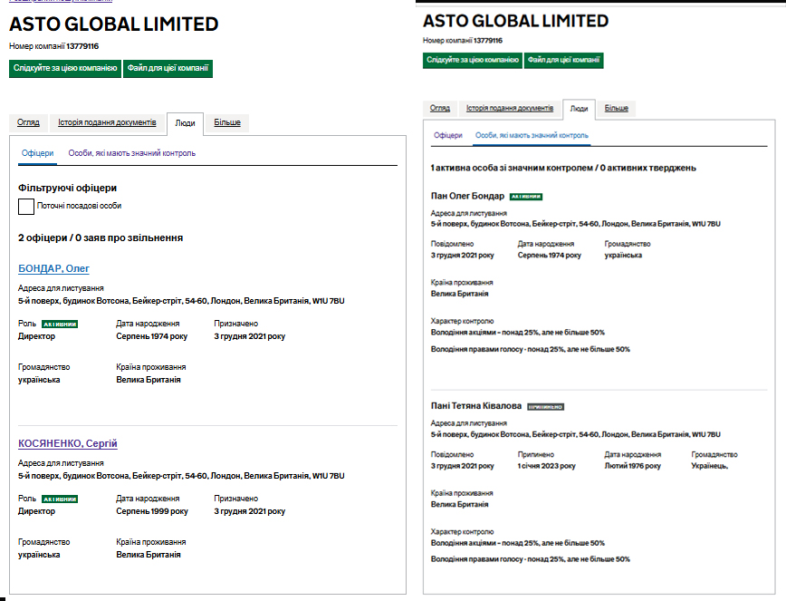 По данным британского реестра юридических лиц, Сергей Косьяненко сегодня является основателем и директором гуманитарного колледжа International Humanitarian College London. А в августе 2023 года он зарегистрировал London education services limited. Это образовательная компания, которая предоставляет услуги репетиторства для детей с различными образовательными потребностями. Кроме того, инвестировал в компании, которые занимаются управлением недвижимостью - Holland park villas management company Limited и Asto global limited.