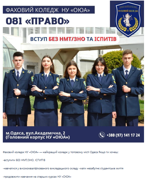 Обособленное подразделение "Профессиональный колледж национального университета "Одесская юридическая академия" (ОП ФК "НУ "ОЮА") ЕГРПОУ 44848067;