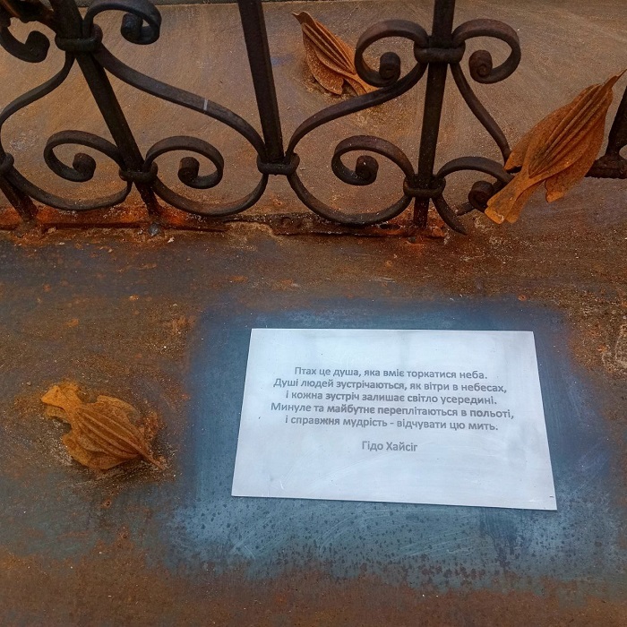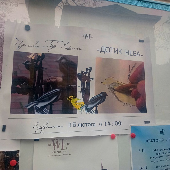 В Одессе реализовали международный авторский арт-проект "Прикосновение неба" (Touch of the Sky). Его автор - Гидо Хайсиг (Guido Heisig) - пилот с 25-летним стажем, художник и волонтер из Германии, автор артбука "Молчаливые герои". За собственные средства он инициировал создание и установку скульптур птиц на старинных решетках в городских двориках. Это символ памяти о погибших украинцах, чьи души, по замыслу художника, продолжают жить.