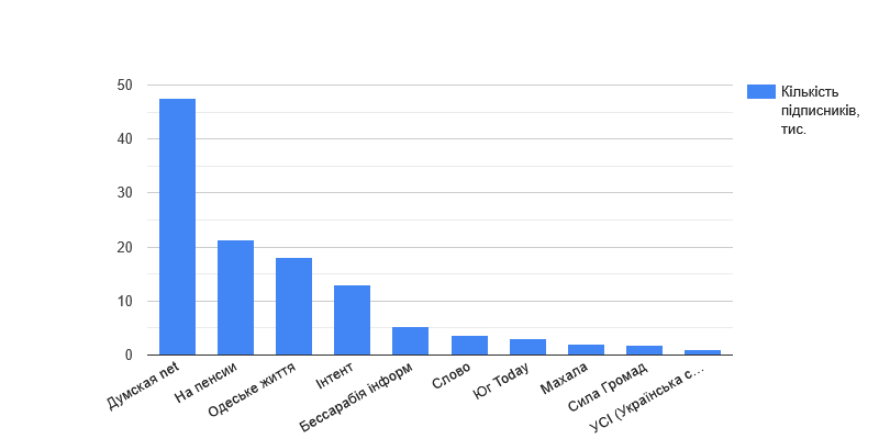 В ходе нового исследования было проанализировано более 60 медиаресурсов. Действующими считались те страницы, где последнее видео на момент 10 сентября 2025 года (дата проведения мониторинга) появилось не позднее чем месяц назад. Отдельно отметим, что издание "Одесский курьер" ссылается на YouTube-канал, но он является личной страницей конкретного человека, поэтому мы считаем, что его следует включать скорее в рейтинг блогов, а не в рейтинг медиа.