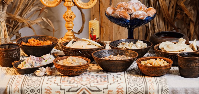-Чествование умерших: по традиции, на столе оставляют тарелку с кутьей и ложку для душ умерших родственников, которые, по поверью, приходят ужинать в этот вечер.