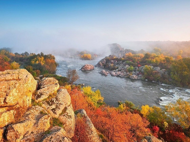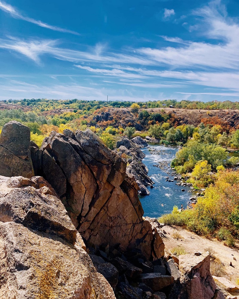 Здесь можно увидеть огромные валуны и скалы высотой 40-60 метров, крутые обрывы, основу которых омывают бурные речные потоки. В некоторых местах ровные и спокойные воды реки Южный Буг будто "закипают", тем самым создавая так называемые Мигийские пороги.