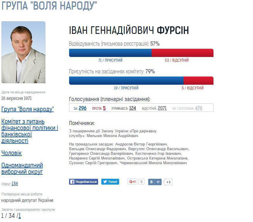 Сосед по округу Леонида Климова Иван Фурсин также вошел в Комитет по вопросам финансовой политики и банковской деятельности: сначала в этом Комитете нардеп возглавил подкомитет по вопросам банковской деятельности, а позже – подкомитет по вопросам банковской деятельности, взаимодействия с Национальным банком Украины, финансового мониторинга, предотвращения легализации и отмывания незаконных доходов. Иван Фурсин оказался более дисциплинированным и пропустил 7 заседаний комитета.