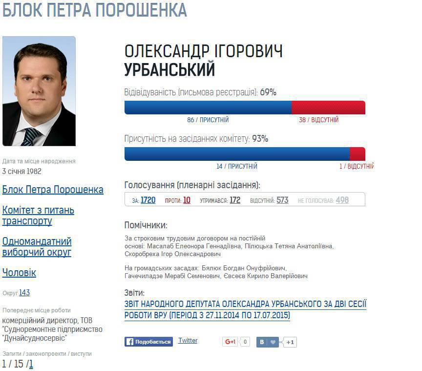 Стоит отметить, что Сергей Фаермарк, Иван Фурсин и Александр Урбанский лучше посещают заседания комитетов, нежели пленарные заседания Рады. Остальные 13 одесских нардепов имеют лучший процент по посещению пленарных заседаний, чем по комитетам.